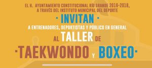 El Instituto Municipal del Deporte a cargo de Dagoberto Menchaca invita a toda el publico en general, especialmente a deportistas, entrenadores y jóvenes interesados a participar en el primer taller de Taekwondo y Boxeo que se llevara a cabo en el auditorio de la presidencia municipal a partir de las 4:30 de la tarde.