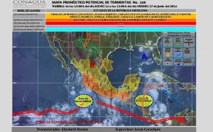 Derivado de la zona de inestabilidad en el pacifico con potencial ciclónico, un cana de baja presión se ha extendido desde el norte hasta el centro del país, mismo que favorecerá intervalos de chubascos con tormentas puntualmente fuertes en Durango y Zacatecas, y lluvias aisladas en Chihuahua, Coahuila, Nuevo León, Tamaulipas, San Luis Potosí, Aguascalientes, Guanajuato, Querétaro, …