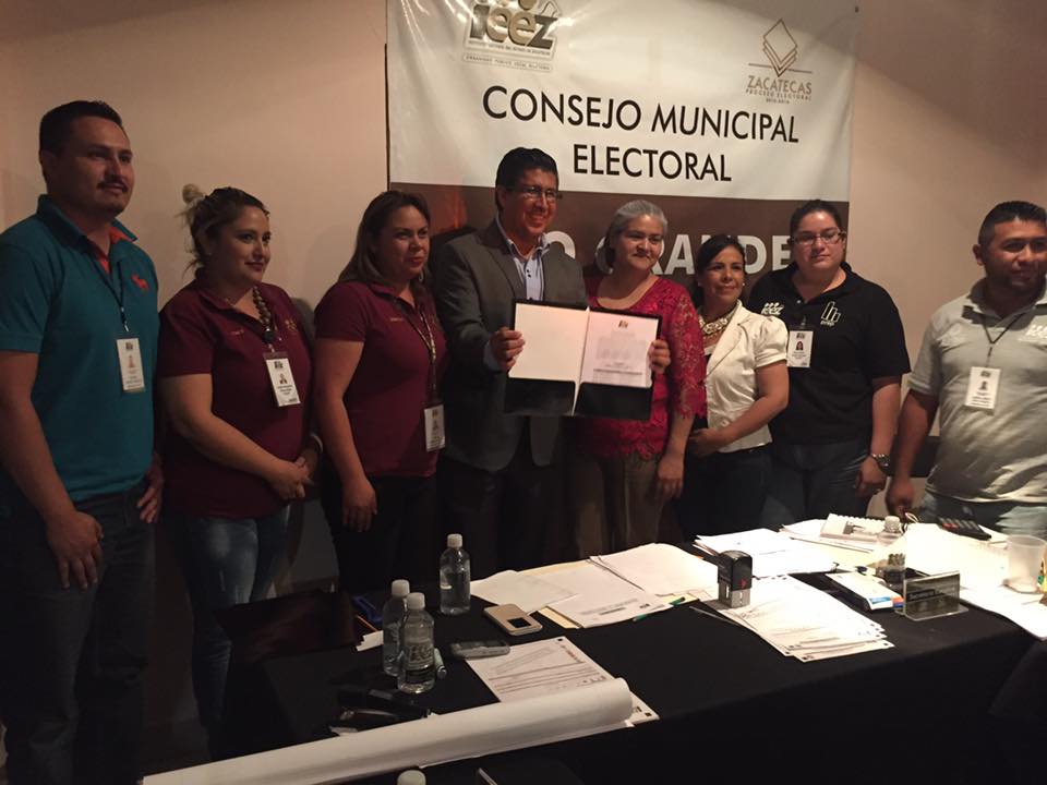 La tarde de este miércoles Julio Ramirez Lopez candidato a presidente municipal de Rio Grande, recibió la constancia de mayoría que lo acredita como presidente municipal electo de manos de Judith Ramírez, Presidenta del Consejo Municipal de IEEZ.