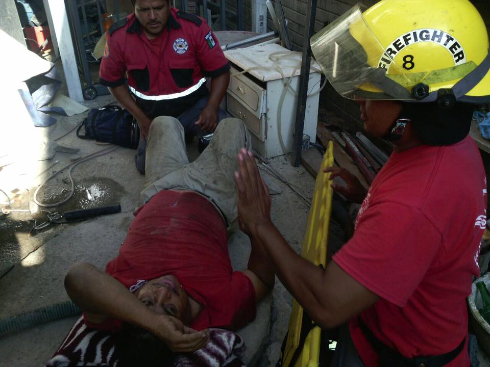 Paramédicos de la Unidad de Protección Civil y Bomberos de este municipio acudieron al llamado que hicieran los vecinos de la Calle Rio Bravo de la Colonia Ruiseñor, para auxiliar a una persona quien cayó de un andamio de mas de 7 metros de altura.