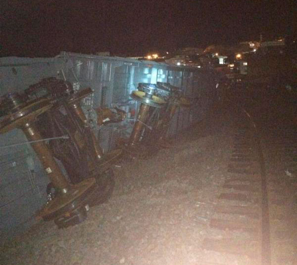 Según reportes de Seguridad Pública, los vagones se ladearon hasta quedar recostados a un lado de la vía, en un sitio donde no hay asentamientos humanos ni paso de personas o vehículos, de ahí que los daños materiales únicamente fueron para el ferrocarril.