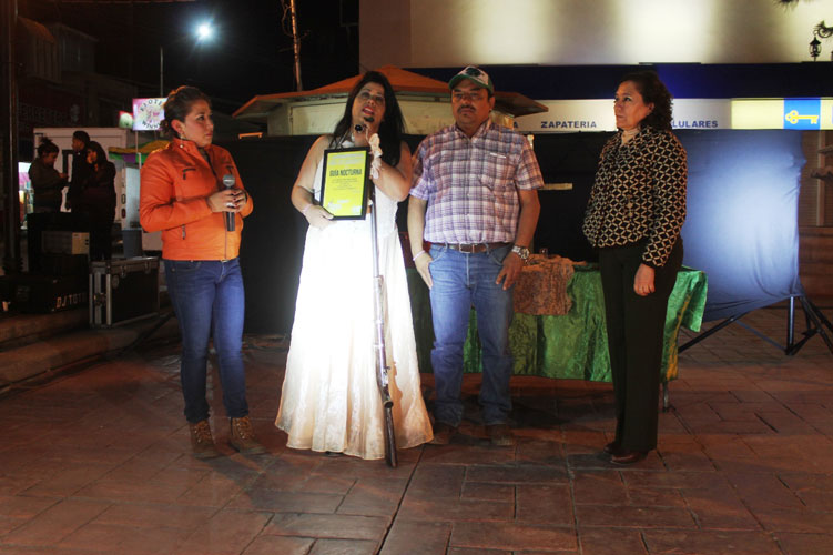 En este evento, en donde se contó con la presencia de la Diputada Local, Yasmin Esquivel Aguilera, Zapata Zavala, hizo la entrega de un reconocimiento a la directora de Guía Nocturna, por demostrar su talento y envolver a las y los riograndenses en un emotivo ambiente en el marco del Festival Cultural.