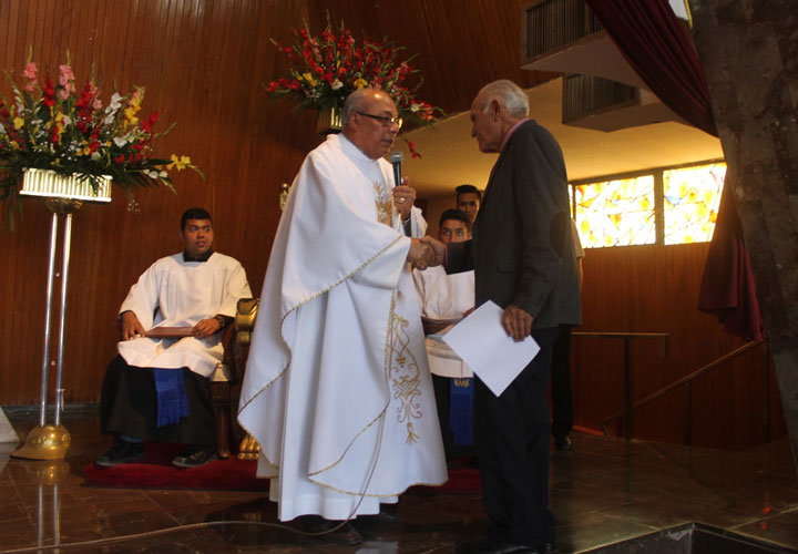 Durante la celebración dominical realizada en Santa Elena de la Cruz, el alcalde riograndense, Miguel Rodríguez Molina, la síndico municipal Ana Marianela Hernández Peña, el secretario del Ayuntamiento Felipe de Jesús Badillo Ramírez, el alcalde con licencia Constantino Castañeda Muñoz, recibieron un reconocimiento por parte de la Parroquia de Santa Elena, así como por la ACJM, por el respaldo en todas las actividades que se llevaron a cabo con motivo de Semana Santa de este 2016.