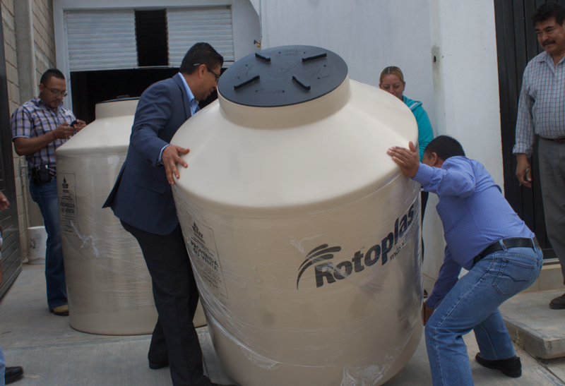 Finalmente el presidente municipal Julio Cesar Ramírez López acompañado del titular de Desarrollo Económico y Social Pedro Juanes Conde hicieron la entrega de tinacos, Fermina Castañeda de la colonia Jardines agradeció el apoyo de parte del alcalde y sobre todo el interés que presenta por ayudar a la economía familiar además de que estos artículos son importantes para mejorar las condiciones de vida, pues un tinaco o un calentador solar aquí podemos adquirirlo casi a mitad de precio”