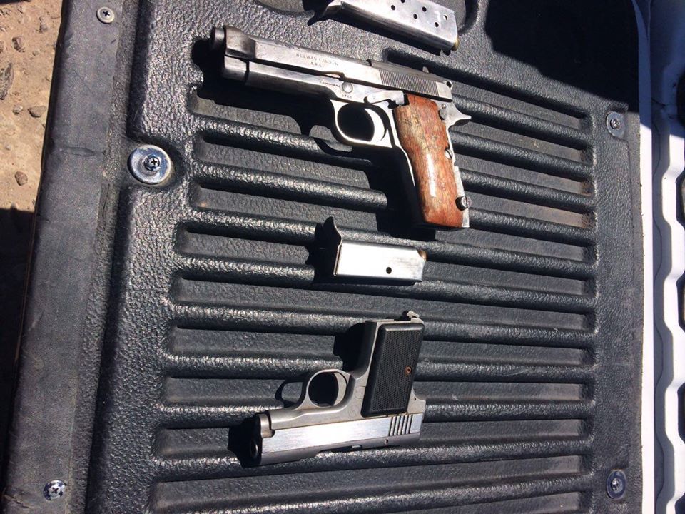 Al revisar en el interior de la camioneta en la que viajaban, una Chevrolet Chyenne, color blanco con negro y vidrios polarizados, debajo del asiento del conductor, donde iba Amairani, estaba un arma de fuego corta, tipo escuadra, calibre 9 milímetros, con 1 cartucho útil.