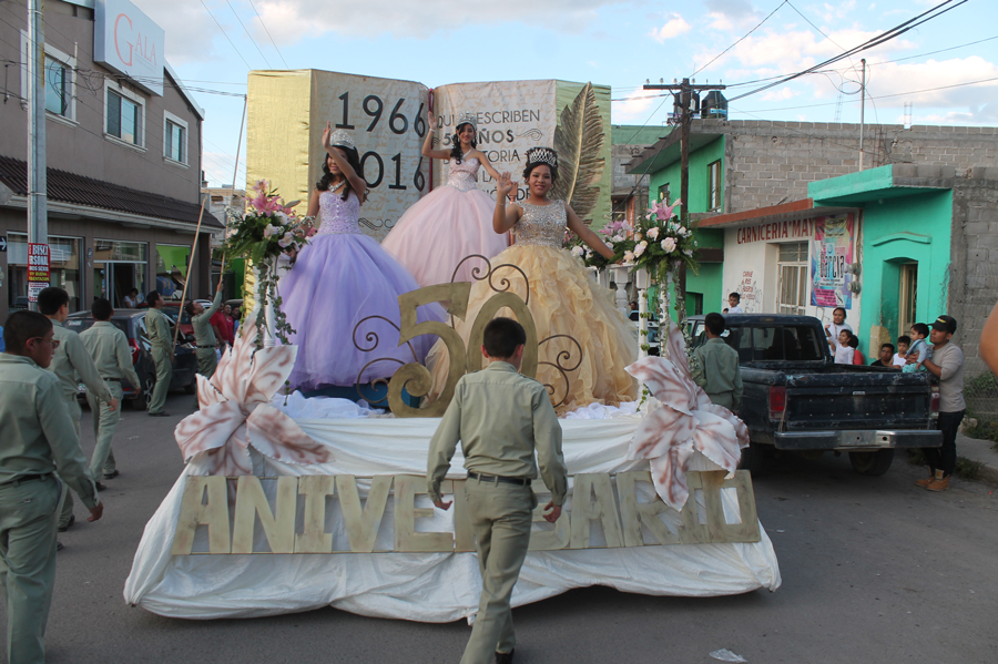 El tema central del desfile se enfoco en hacer un recuento de las primeras 5 décadas de la institución, carros alegóricos alusivos a los años 60, 70 y 80 con la intención de recordar vivencias y añoranzas de las generaciones que se encargaron de darle vida y permanencia a la importante institución que hasta hoy en día ha sido posible mantenerse entre las mejores secundarias de la zona norte del estado con una importante matricula de alumnos y personal docente.