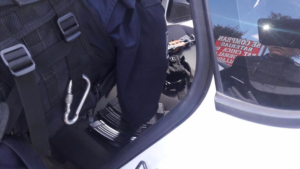 Al revisar los dos vehículos los uniformados detectaron que en la parte de los asientos traseros de un Volkswagen Vento, color blanco y placas de circulación ZDD531S, estaba un arma larga AK-47 y cargadores, por lo que de inmediato dieron parte a más autoridades ministeriales.