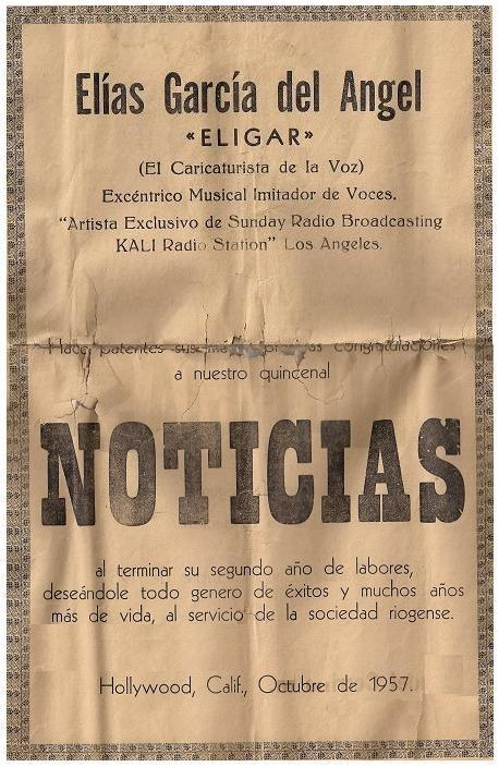 Todo el honor y la grandeza filosófica que emanaba de ese hombre, se plasmaba humildemente en otro periódico de pensamiento igual. Pensar de adelantado y hombre de bien, ese era ELIAS GARCÍA DEL ÁNGEL, Riograndense que escribiría y editaría estas elocuentes palabras en septiembre de 1957, en la hermana república de Honduras (Tegucigalpa) y editadas en el histórico periódico “NOTICIAS”.