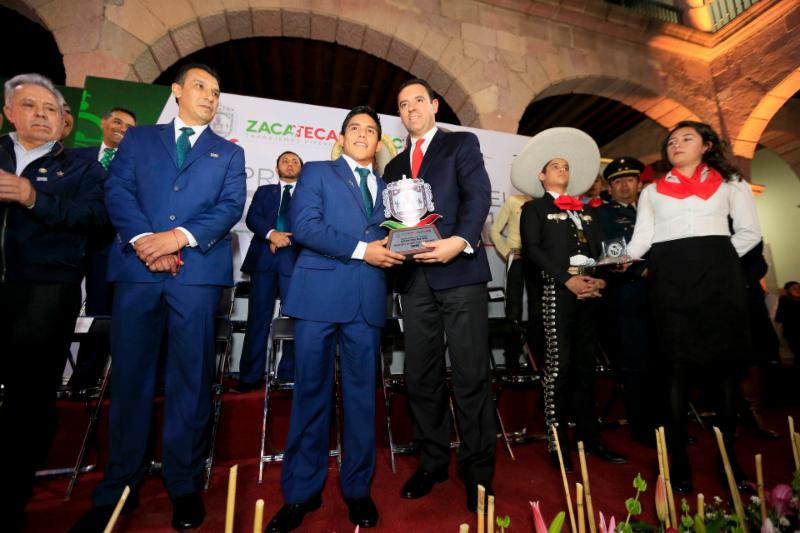 Zacatecas, Zac.- Al entregar el Premio Estatal del Deporte, el Gobernador Alejandro Tello Cristerna aseguró que en Zacatecas el deporte es de todos y para todos, por lo que, desde la Administración que encabeza, se trabajará para su promoción a manera de prevención de conductas antisociales.