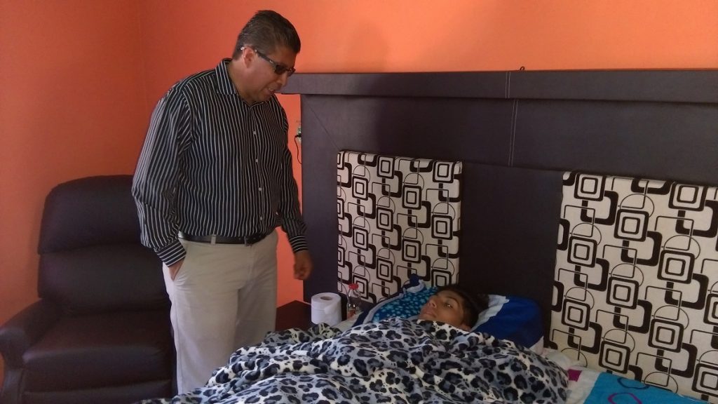 Eleno Samaniego y Claudia Narayama Ramírez fueron también quienes hicieron entrega de estos aparatos que constan de una cama ortopedica reclinable, una silla de ruedas, una grúa de respaldo y una silla bañera, mismos que fueron donados por la Sra. Maribel Santos y el Sr. Herón García además de pañales y otros aditamentos que fueron donados por el Club de Migrantes Campesinos del Aguanaval con la finalidad de que Jonathan Ojeda obtenga una mejor calidad de vida.