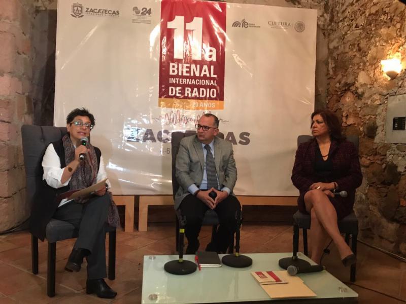 Así lo expresó en rueda de prensa, Antonio Tenorio Muñoz Cota, director general de Radio Educación, junto con Hilda Saray Gómez González, coordinadora general de la Bienal, y María Teresa Velázquez Navarrete, directora general del Sistema Zacatecano de Radio y Televisión (Sizart).