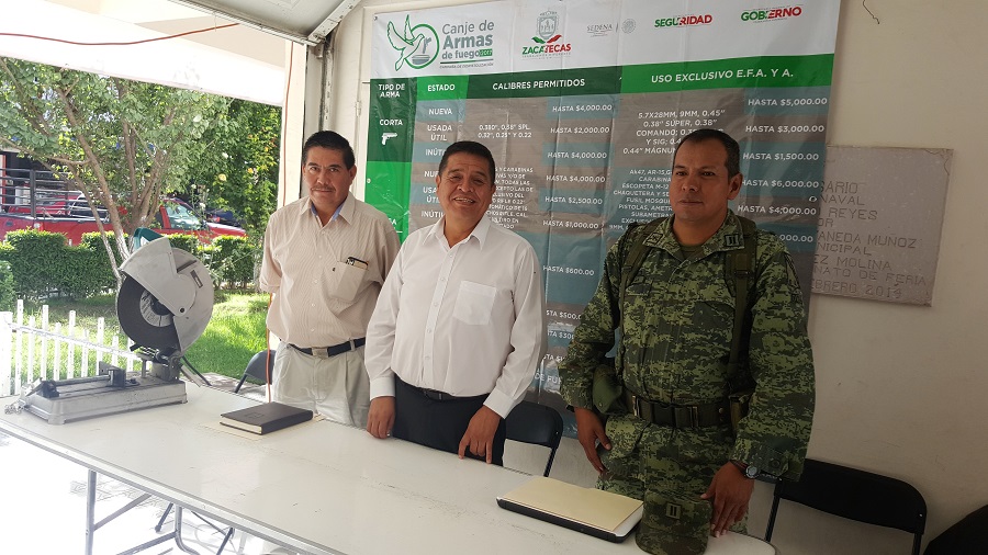 La intención dijo “es que los ciudadanos hagamos conciencia de lo peligroso que es tener una arma de fuego o municiones en las casa, no se diga otro tipo de armamento como granadas; en muchas ocasiones por alguna circunstancia este tipo de armas están en los hogares de los ciudadanos, sin saber realmente cual haya sido su origen o como hallan llegado a ese lugar; los adultos, principalmente los adultos mayores son quienes toman más conciencia del peligro que representa para el resto de los habitantes de ese lugar, el que haya una arma ahí, pero no pueden deshacerse de ella debido a que no sabe en dónde y ni cómo hacerlo, además de que siempre existe el temor de que se trate de indagar su procedencia; la campaña de canje de armas 2017 va encaminada a ofrecer a los ciudadanos la oportunidad de deshacerse de una arma, sin que haya ningún tipo de investigación de por medio, además de que se ofrece un incentivo económico por ello, de ahí que va la invitación para todos a que revaloremos la necesidad de que haya un arma en casa, y que caso de haberla y querer deshacerse de ella, los invitamos a que acudan a este módulo”, concluyó.
