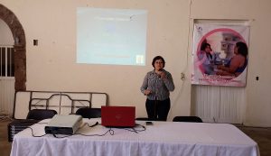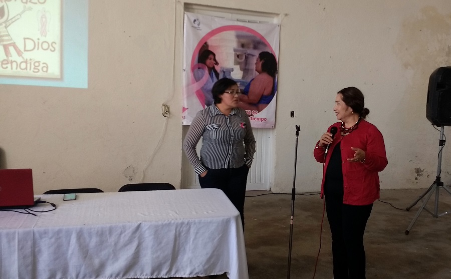La doctora Azucena Martínez, Directora del Centro de Salud de Servicios Ampliados de este municipio fue la encargada de impartir está plática conferencia en la que se tocaron temas importantes como los factores de riesgo para el desarrollo de cáncer, el diagnóstico, el tratamiento y el las formas de prevenirlo mencionó “el cáncer es curable si se detecta a tiempo, pero es necesario saber que elementos son los que debemos de atender y reconocer en nuestro cuerpo para encender la alarma de qué estamos desarrollando cáncer de mama; para esto son estas pláticas para dar a conocer a las mujeres y a los hombres que es el cáncer, cuales son sus síntomas, cuáles pudieran ser su tratamiento y sobre todo lo más importante, su prevención, esa es la parte más importante de estas pláticas, el cáncer de mama ocupa actualmente el 25% del total de los cánceres conocidos, de ahí la importancia de dar a información necesaria para que todos podamos prevenir este tipo de enfermedades” finalizó.
