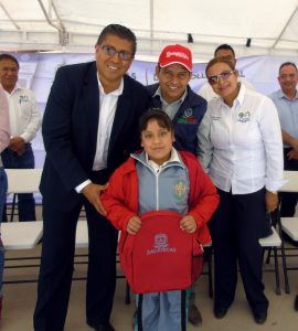 En el mismo evento se hizo entrega de 333 chamarras y mochilas a igual número de alumnos de la institución educativa.