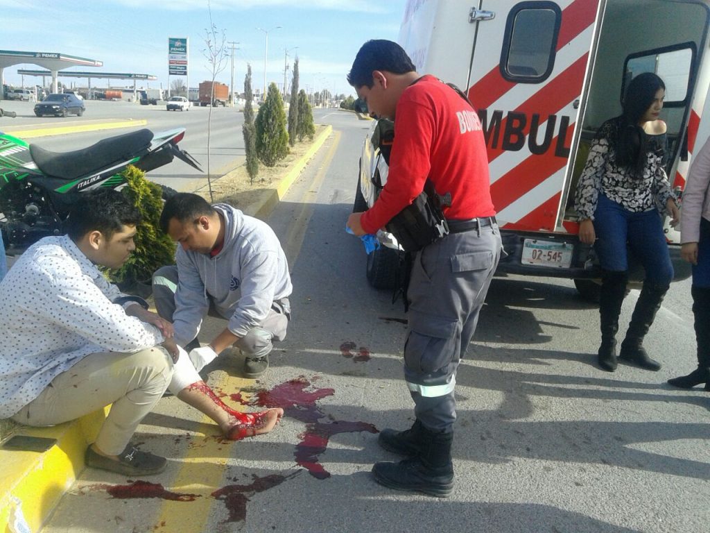 Al arribar los elementos de protección civil y bomberos, efectivamente se percataron de que en el lugar se encontraba un joven de aproximadamente 18 años, quien sufrió una herida de consideración en una de sus piernas, misma que fue ocasionada al caer de su motocicleta en movimiento, por fortuna el hecho no paso a mayores, y el lesionado de atendió en el lugar.