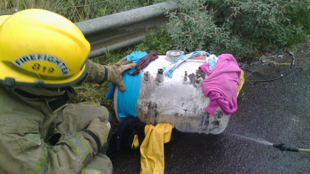 Conductores que circulaban por la misma carretera se alarmaron al ver tirado en la carretera el tanque de gas que estaba expulsando grandes cantidades del combustible, lo que causó gran alarma entre los tripulantes de las unidades motrices que circulaban por esta vía de comunicación, al saber de la situación, que se percibía altamente peligrosa.