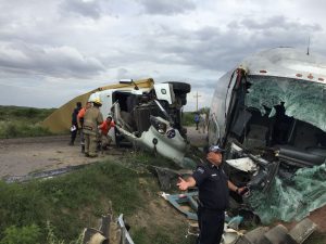 Por demás aparatoso resulto un accidente que se suscitó la tarde noche de este jueves 5 de julio en donde se vio involucrado un camión de pasajeros que transportaba alrededor de 40 personas que se dirigían Ciudad Juárez, habiendo partido del municipio de Fresnillo Zacatecas.