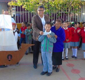 De esta forma, el alcalde de Rio Grande, hizo entrega a nombre del Club de Migrantes Campesinos del Aguanaval de 3 cheques a los alumnos de la escuela primaria Francisco I. Madero de la comunidad de la Luz, quienes a propuesta de los maestros y los padres de familia, recibieron el apoyo económico.