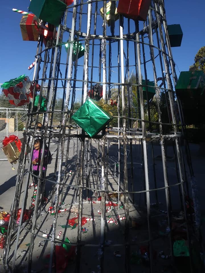 El munícipe público en su perfil de facebook: “Hay 2 cosas por lo que duele el vandalismo que hicieron contra el pino navideño y las cajitas de la plaza principal.