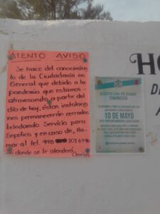 Desde el día 22 de abril de este año, la Oficialía del Registro Civil emitió un comunicado en el que se indica que desde esa fecha y hasta que termine la emergencia sanitaria, se mantendrá cerrado el panteón, y solo se abrirá para la celebración de algún sepelio, en el cual solo se permitirá el acceso a un numero determinado de personas, evitando con esto las aglomeraciones.